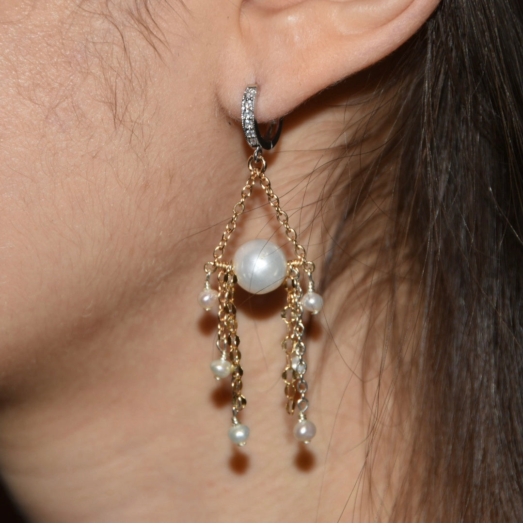 7mm freshwater pearls, 4mm freshwater pearls, gold fill, sterling silver, CZ earring